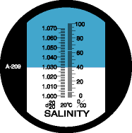 S/Mill-E測量范圍:鹽度 0 至 100‰ 比重 1.000 to 1.070,最小表度:鹽度 1‰ 比重 0.001。此海水密度量表S/Mill-E以每百萬分之一作為標度測量單位。藉由簡單的操作,使用者可以快速地讀取鹽分濃度或海水比重。