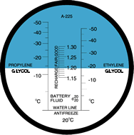 本折射儀的特殊標度能測量電池水的比重,了解做為汽車防凍劑或太陽能電力系統(tǒng)的熱催化劑的乙二醇與丙二醇的凍結(jié)溫度。模塊BC-2E的標度是為°C,而模塊BC-3E為°F。