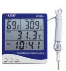 - 關(guān)鍵參數(shù):VC230A 溫度表.測(cè)量范圍,溫度:-20℃~70℃/濕度:20%~90%RH.整點(diǎn)報(bào)時(shí).℃/oF溫度切換顯示,每日鬧鐘.12/24小時(shí)制時(shí)鐘.日歷顯示