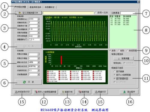 HS5660X型噪聲振動(dòng)測量分析系統(tǒng)是一種以計(jì)算機(jī)為中心,配套精密、高速、多通道噪聲振動(dòng)信號(hào)同步測量分析系統(tǒng),可進(jìn)行大容量數(shù)據(jù)存儲(chǔ)、高速數(shù)據(jù)處理,實(shí)現(xiàn)實(shí)時(shí)FFT細(xì)譜、1/3倍頻程譜、聲壓/時(shí)間歷程分析等等各種時(shí)頻分析。并能自動(dòng)生成各種分析結(jié)果圖表。該系統(tǒng)可根據(jù)用戶需要提供不同配置的聲學(xué)/振動(dòng)分析系統(tǒng),為各類聲學(xué)/振動(dòng)信號(hào)做有針對性的詳細(xì)分析,并將實(shí)時(shí)分析的結(jié)果以圖形、列表或報(bào)告的形式輸出。為工程技術(shù)、質(zhì)量管理人員提供詳實(shí)的產(chǎn)品質(zhì)量判據(jù),同時(shí)為產(chǎn)品的研發(fā)設(shè)計(jì)、生產(chǎn)工藝、質(zhì)量控制提出指導(dǎo)性意見。