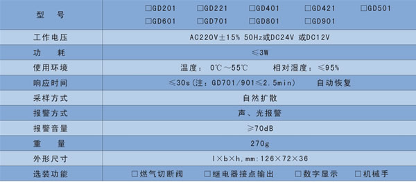 - 關鍵參數(shù):GD系列易燃、易爆及毒性氣體泄露探測器,采用高品質氣敏元件,結合先進電子技術及精良工藝而制成;在家庭中有燃氣及毒性氣體存在的地方,一旦液化石油氣、天然氣、城市煤氣、一氧化碳、氫氣等氣體的濃度達到設定預警值,GD系列氣體探測器將忠實地發(fā)出聲光報警信號