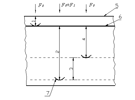 5—試樣表面; 6—測量基準面; 7—壓頭位置。