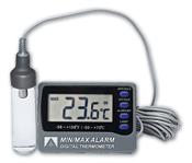 Min/Max alarm setting features with audible warnings for out-of-range temperature