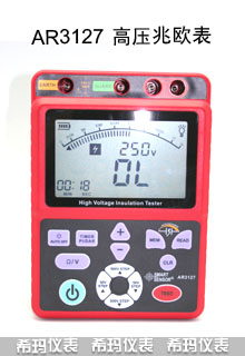 250V:0.0~499.9MΩ 500V:0.0~999MΩ 1000V:0.0~1.99GΩ 2500V:0.0~99.9GΩ 5000V:0.0~1000GΩ |
