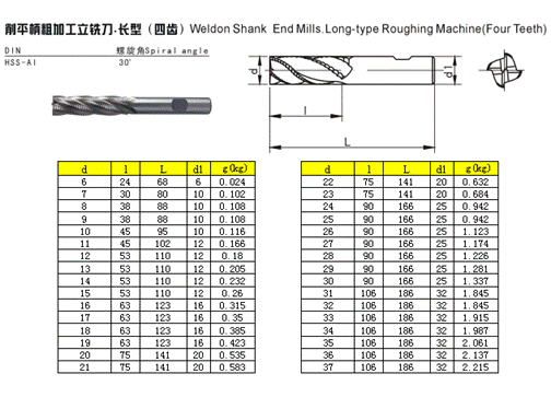 - 儀器名稱:削平柄粗加工立銑刀·長型(四齒)