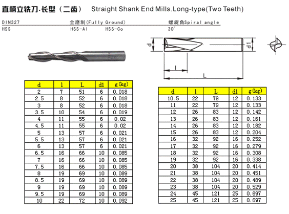 - 儀器名稱:直柄立銑刀·長(zhǎng)型(二齒)