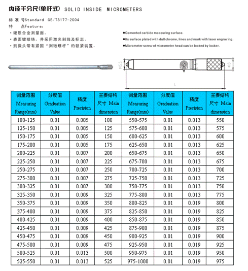 - 儀器名稱:內(nèi)徑千分尺(單桿式)