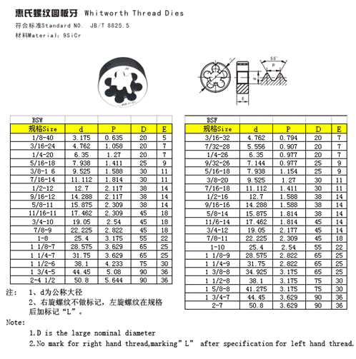 成都成量工具惠氏螺紋圓板牙