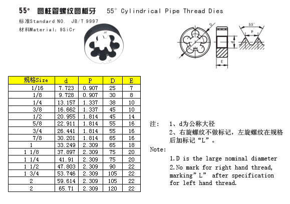 - 儀器名稱:55°圓柱管螺紋圓板牙