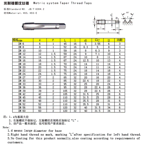 米制錐螺紋絲錐