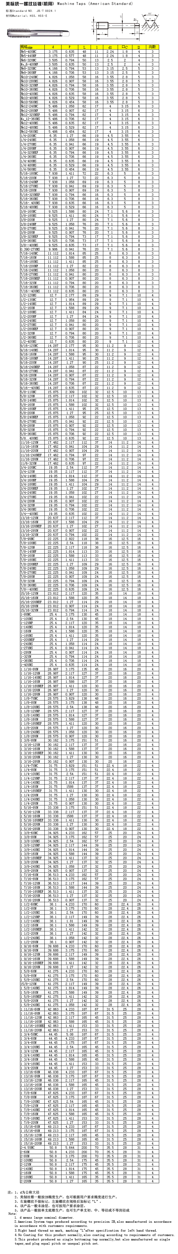 - 儀器名稱:美制統(tǒng)一螺紋絲錐(機(jī)用)