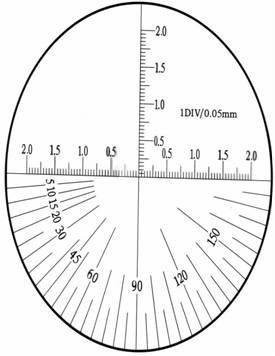 - 關(guān)鍵參數(shù):技術(shù)參數(shù): 放大倍數(shù): 25倍 物方視場(chǎng) : 4mm 測(cè)量范圍:0~4mm 測(cè)量分劃值:0.05mm 角度測(cè)量:0~180° 測(cè)量精度:±1% 物方工作距離: 31.3mm 系統(tǒng)焦距 : -10 數(shù)值孔徑 : 0.088 系統(tǒng)長(zhǎng)度: 122.6mm LED亮度: 600~1000 充電電流: 10mA 充電時(shí)間 : 1小時(shí) 放電時(shí)間 : 2小時(shí)