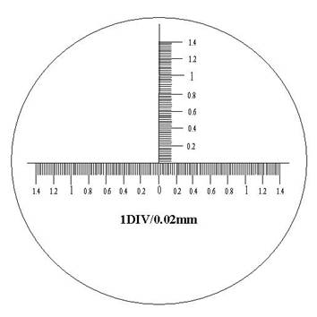 方法1:拿一把直尺上面表有每小格1毫米的尺,把放大鏡顯微鏡的物鏡對準毫米刻度,一般40倍物方視場(物體的范圍) 是4.4毫米,60倍是3毫米,80倍是2.2毫米,100倍是1.9毫米,150倍是1.27毫米。