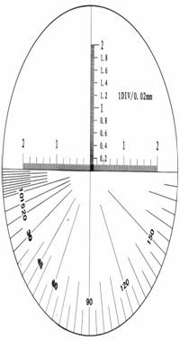 3 、本顯微鏡對準(zhǔn)觀察物在調(diào)焦清晰時,本顯微鏡刻度尺上的1小格等于實(shí)際尺寸