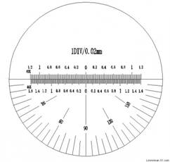 目鏡最下面是45倍,目鏡最上(拉上來)面是60倍,分劃刻度尺分別是45倍和60倍對應(yīng)刻度測量。目鏡可360°旋轉(zhuǎn)對應(yīng)被看物,目鏡旋轉(zhuǎn)調(diào)整,可同時看清分劃尺和視野中的物體,可適應(yīng)不同視力用戶使用。目鏡順時針方向旋轉(zhuǎn)可同時測量孔距、刻線寬度、刻線距離、鍵槽寬度、狹縫凹痕寬度、長度、金屬和非金屬表面質(zhì)量、纖維、織物密度、野外標(biāo)本等,XK系列均可同時測量0~180°角度。