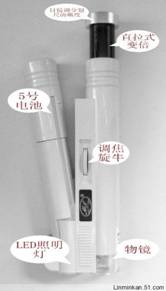 4、兩邊拉開電池盒部份燈就會亮,把觀察物放在防護罩中心,把眼睛對準(zhǔn)目鏡,調(diào)節(jié)調(diào)焦齒輪,至看清為止。變倍時直接把目鏡拉出實現(xiàn)變倍,然后再調(diào)焦直到看清為止。