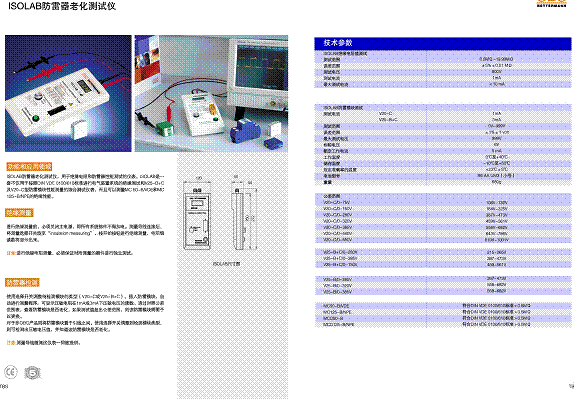 - 關(guān)鍵參數(shù):產(chǎn)品描述 ISOLAB防雷器老化測(cè)試儀,是用于絕緣電阻和防雷器性能測(cè)試的儀表。 使用選擇開(kāi)關(guān)調(diào)整待檢測(cè)模塊的類型,插入防雷模塊,自動(dòng)進(jìn)行測(cè)量程序。 可顯示壓敏電阻在1mA或3mA下壓敏電阻的讀數(shù)。通過(guò)對(duì)照公差范圍表,查看防雷模塊是否老化,如果測(cè)試值超出公差范圍,或者超出產(chǎn)品出廠值的10%,則該防雷器需要予以更換。 對(duì)于非OBO產(chǎn)品則將防雷模塊置于引線之間,使用選擇開(kāi)關(guān)調(diào)整到檢測(cè)模塊類型,則可檢測(cè)出壓敏電壓值,并知道該防雷模塊是否老化。